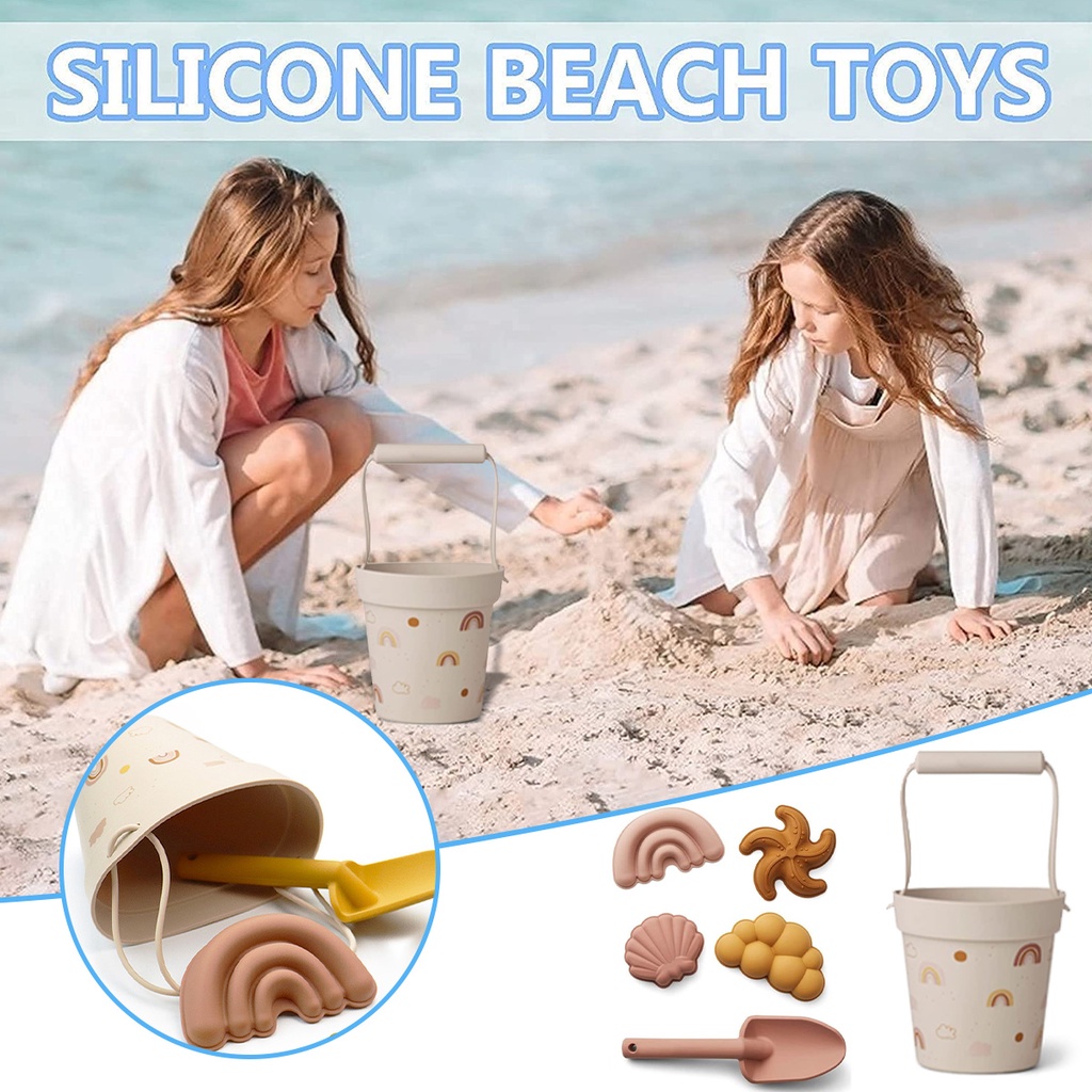 Beach Sand Toy Set for Kids Silicone Beach Pail Collapsible Bucket Sand Shovel Mold Play ToysST-BA1-SHCYC10