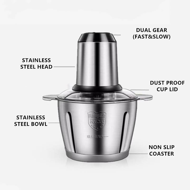(3 LITER) Stainless Steel Blender & Mixer Food Chopper Electric Meat Grinder Food Processor Pengisar Daging Sayur