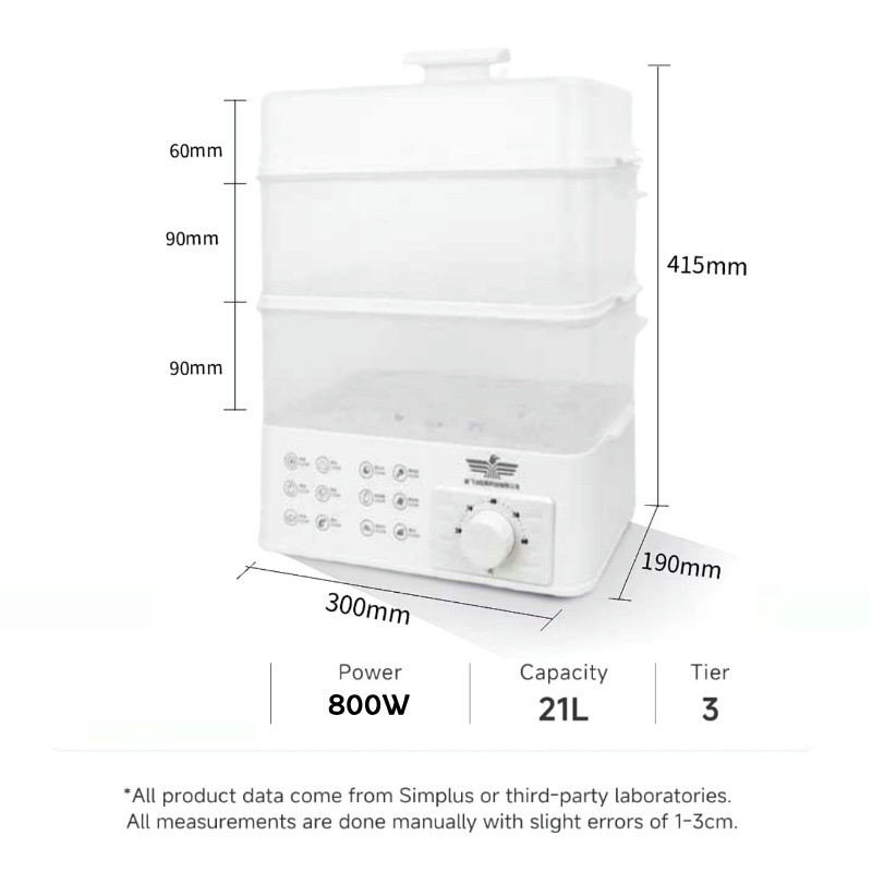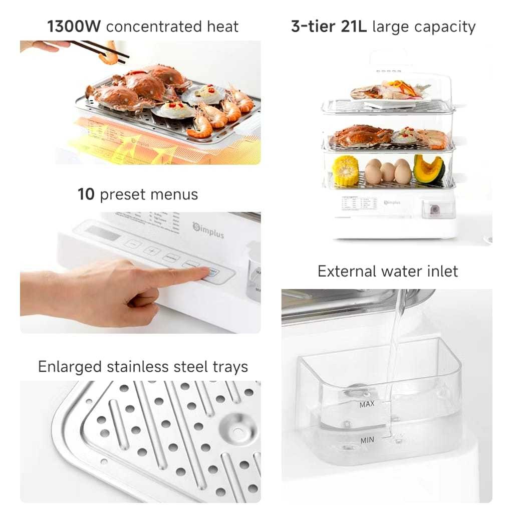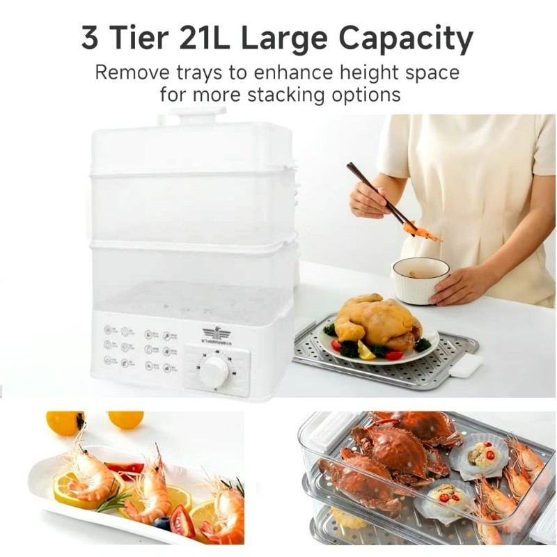 PENSONIC 3 Layer Electric Food Steamer Auto Cut Off 3-Tier 21L 800W Enlarged Steaming Tray Pengukus