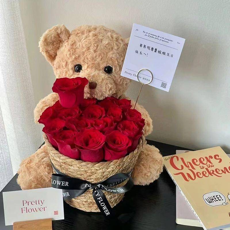 Bear Plush Toys Teddy Bear Dolls Eternal Flower Doll Bear Hug Bouquet Birthday Gift to Girl Teddy Bear Hug Bucket Girlfriend Bestie Mom