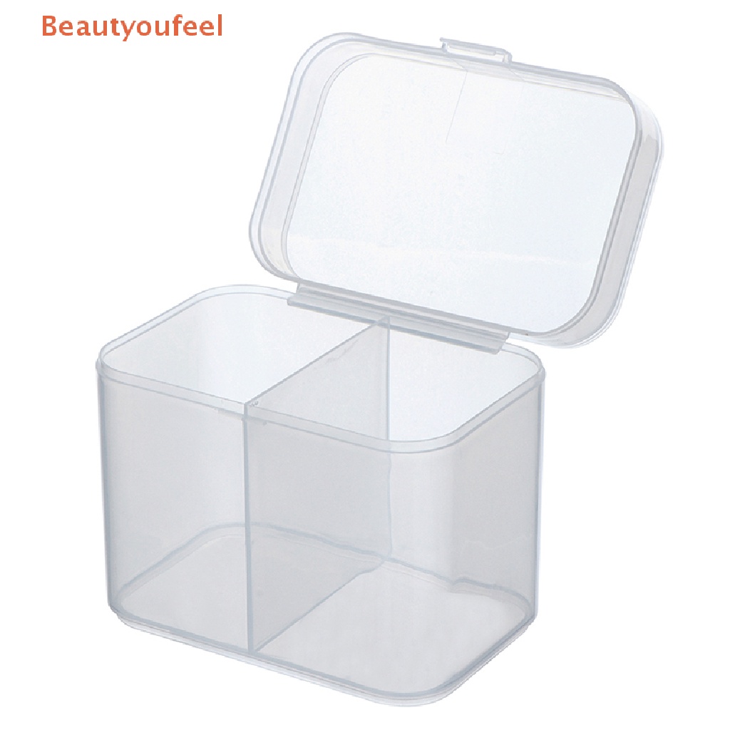 Beautyoufeel Cosmetic Wash Towel Storage Box 2 Grid Plastic with Lid Cotton Unloading Tool