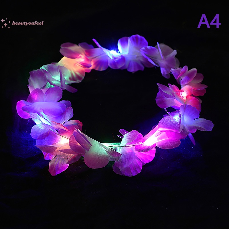 Beautyoufeel Glow Light Up Simulation Flower Crown Women Girl LED Hawaiian Lei Birthday Gift Festival Wedding Party Favors