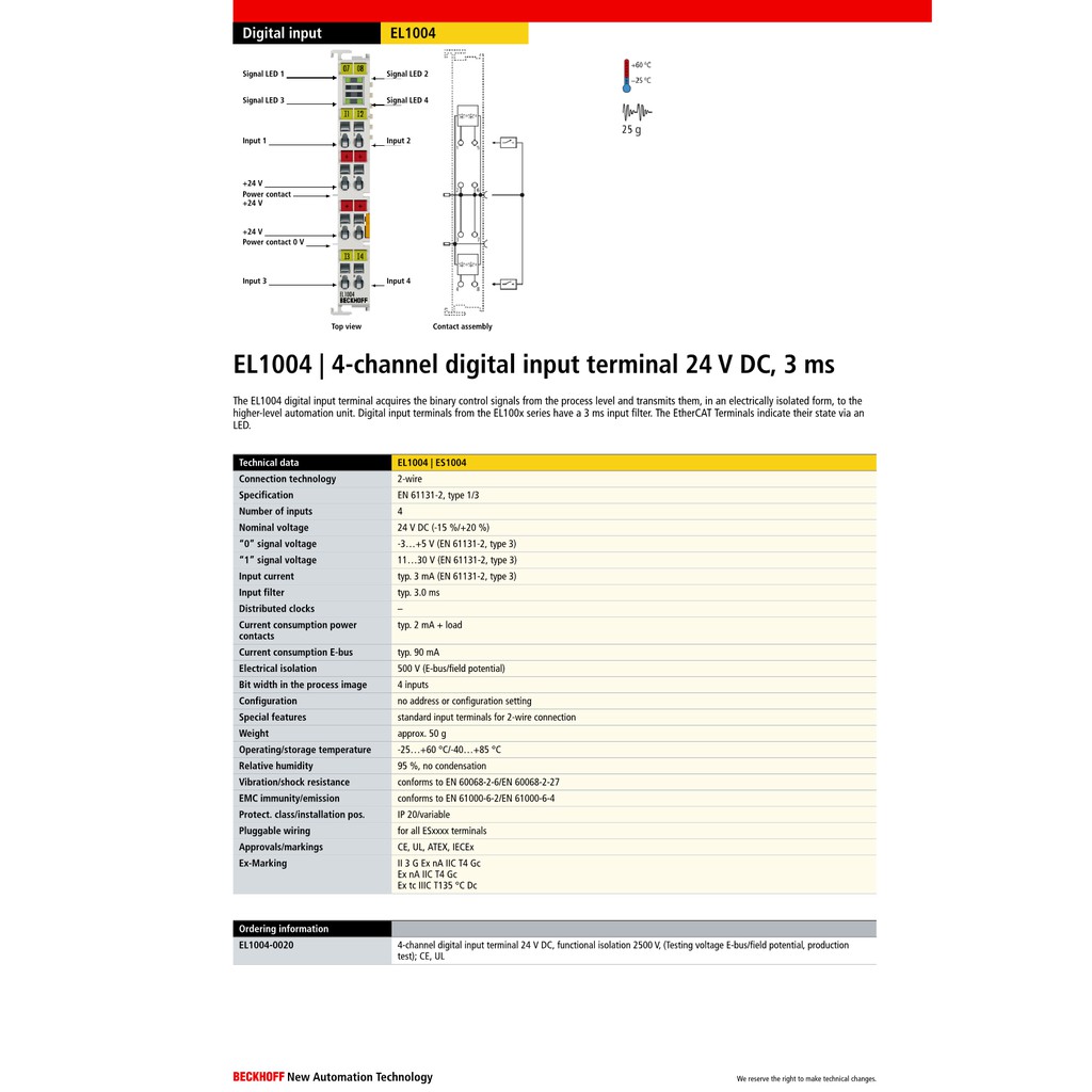 Beckhoff 4-Channel Digital Input Terminal EL1004