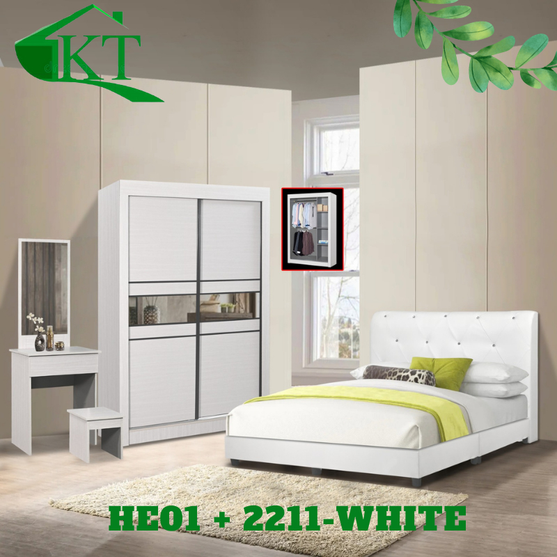 Bedroom Set Sliding Door Wardrobe Queen Bedframe Bedside Table Dressing Table Set Bilik Tidur