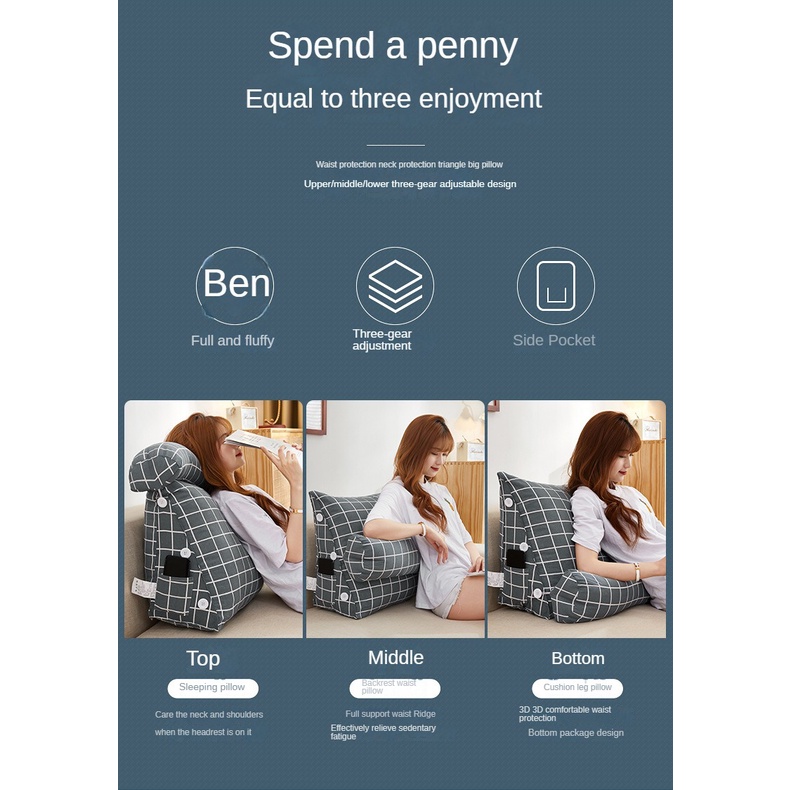Bedside Triangle Cushion Dormitory Bed Big Cushion Living Room Sofa Cushion Waist Support Large Backrest Cushion