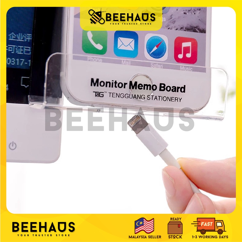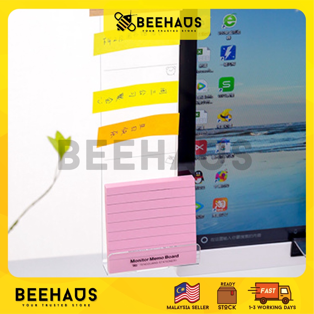 Beehaus Acrylic Monitor Message Memo Board | Computer Monitor Side Panel Notes Message Board Sticky Reminder Papan Memo