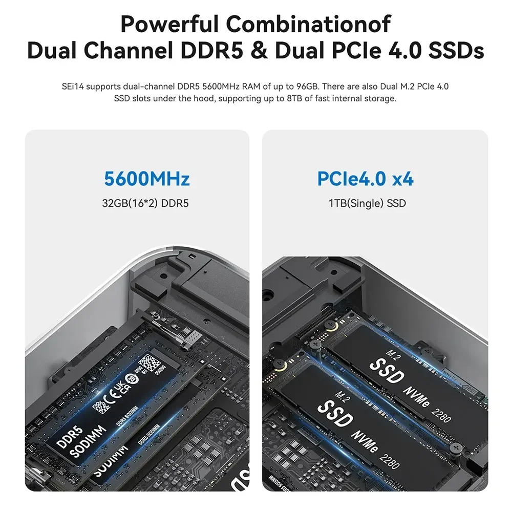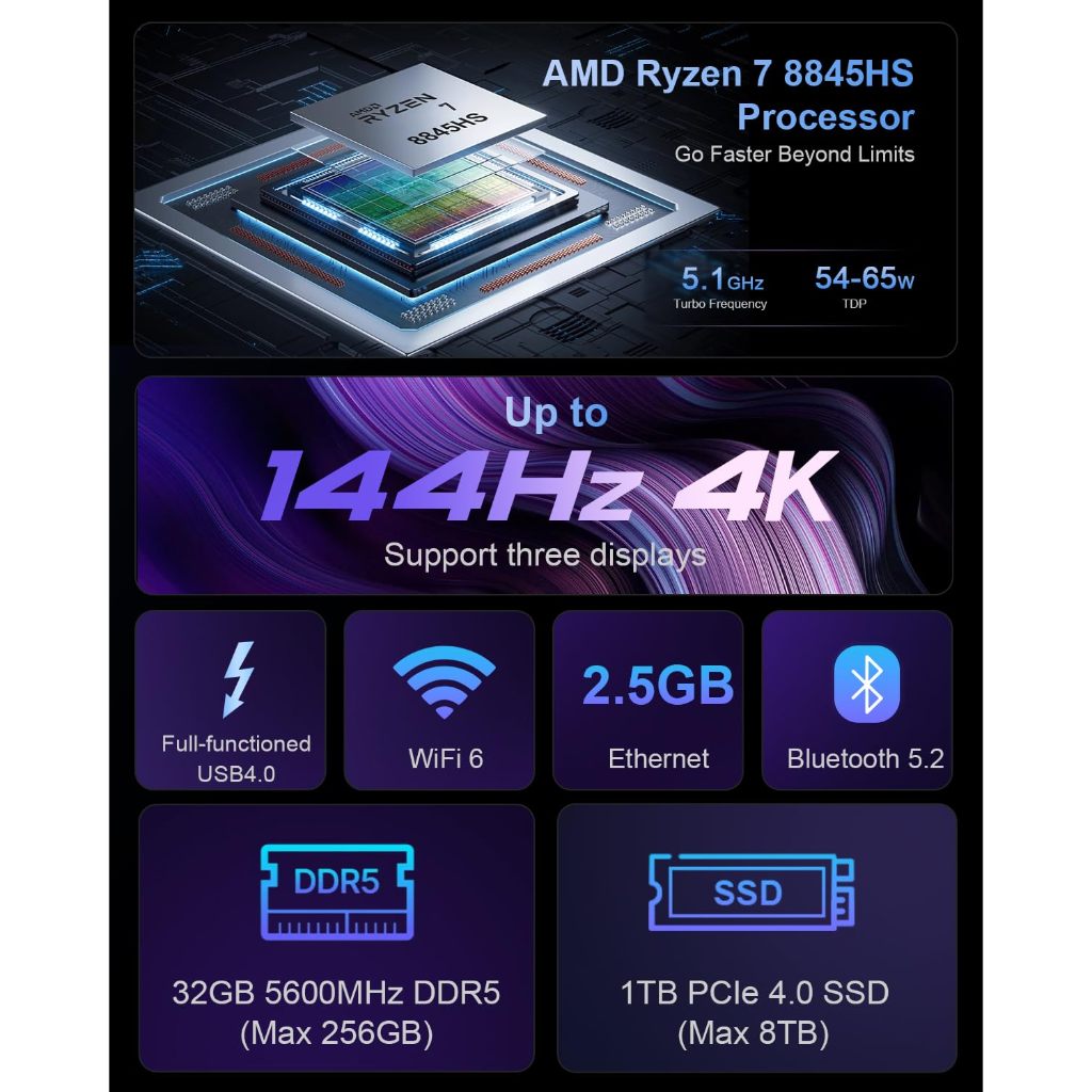 Beelink SER8 SER9 AMD R7 8845HS 6800U Mini PC AI 9 HX370 Windows11 Pro DDR5 32GB 1TB SSD WIFI6 BT5.2