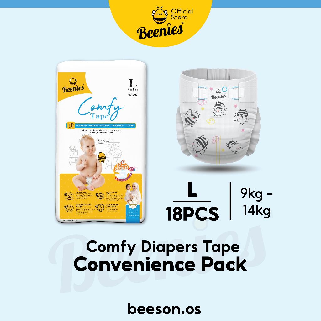 Beenies Comfy Tape CONVENIENCE Pack Lampin Bayi Jenis Tape Pek Kemudahan / Baby Diapers Tape NB-XL 1 Single Pack