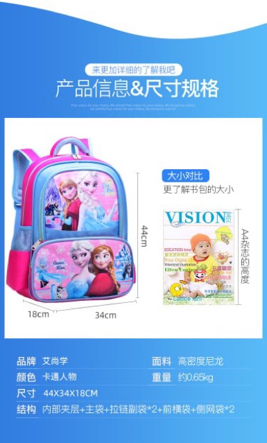 Beg Sekolah/Travel Nursery-Kindy-Tadika Pre-School Taska Primary Large Capacity School Bag (Frozen, LOL Surprise, Pony)
