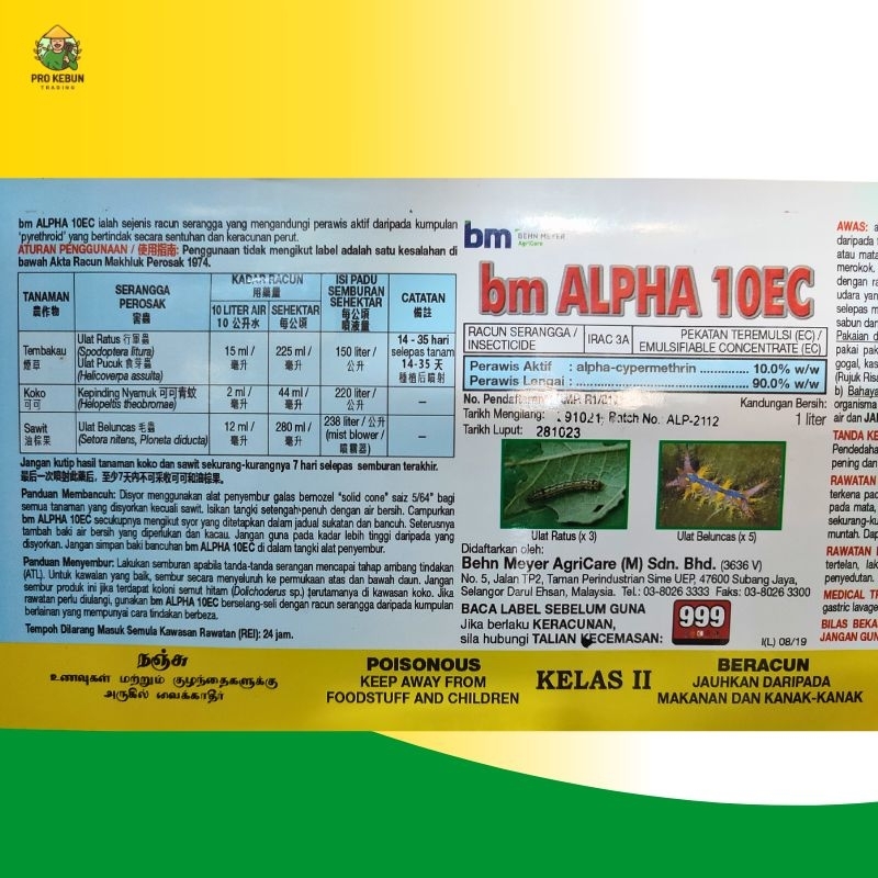 Behn Meyer Alpha 10 EC 1 Liter Insecticide Racun Serangga Alpha Racun Kesing Bong Padi Racun Serangga Dalam Padi Ulat