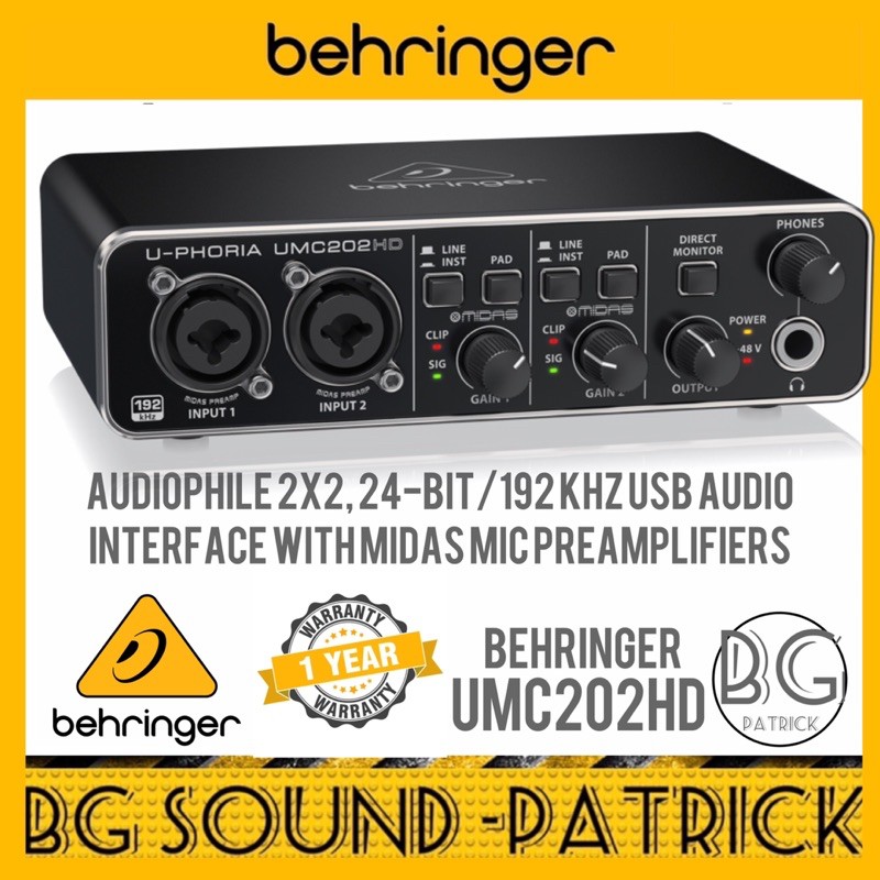 Behringer UMC-202HD 2 X 2 USB Audio Interface With MIDAS Mic Preamps / UMC202HD / UMC 202HD