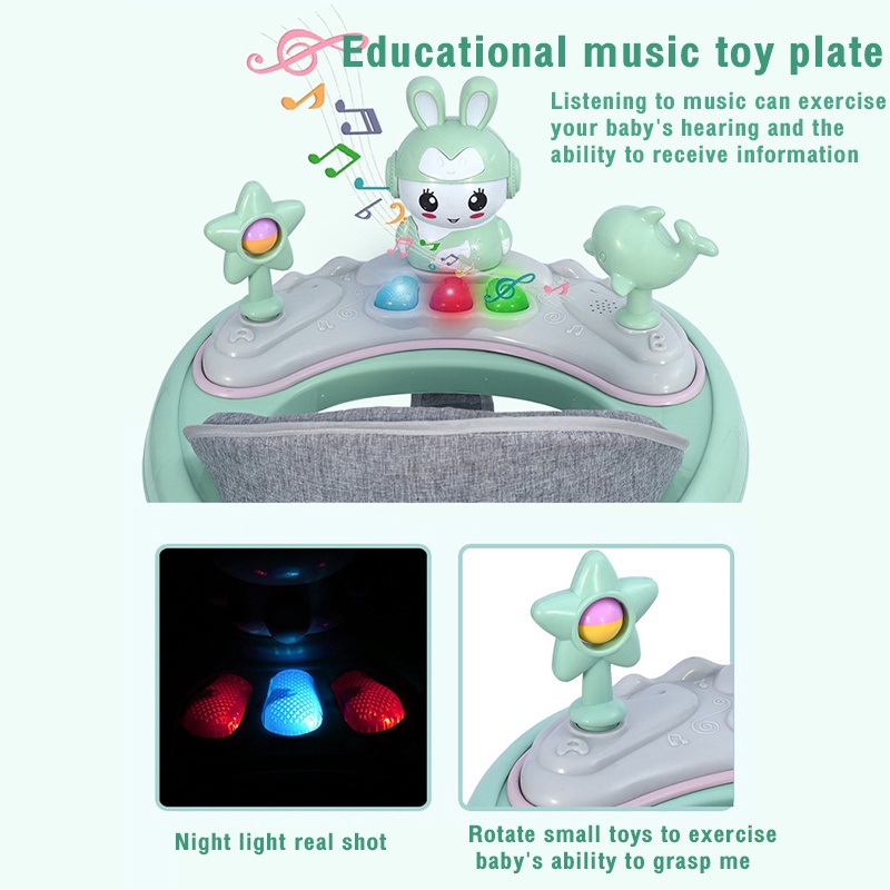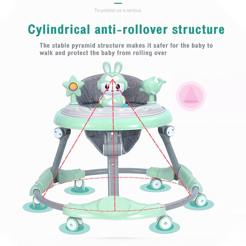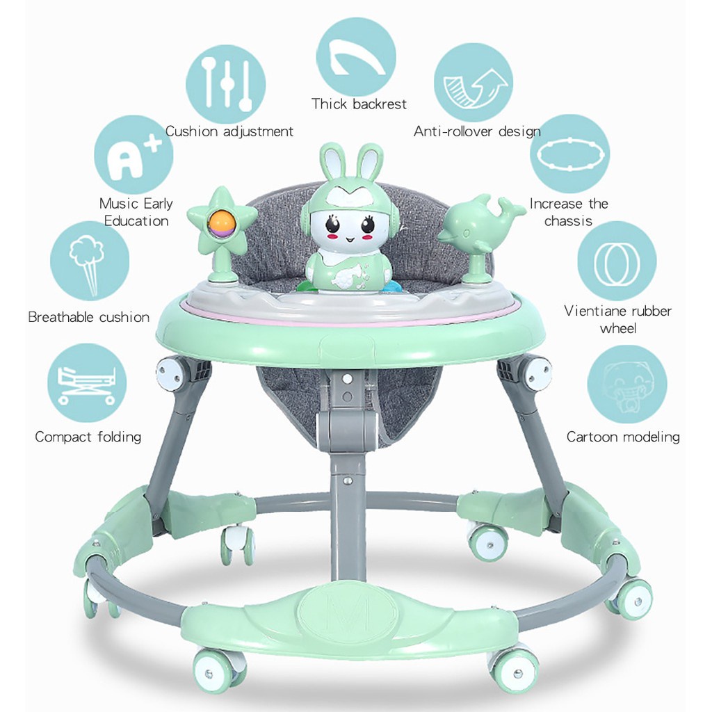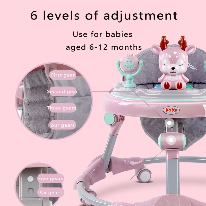 Beige Anti-fall Walker baby Foldable Anti-O-Leg with Music Height Adjustable Safety multifunction baby walker