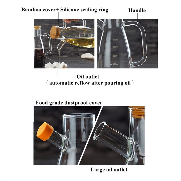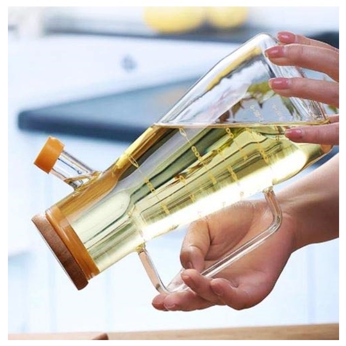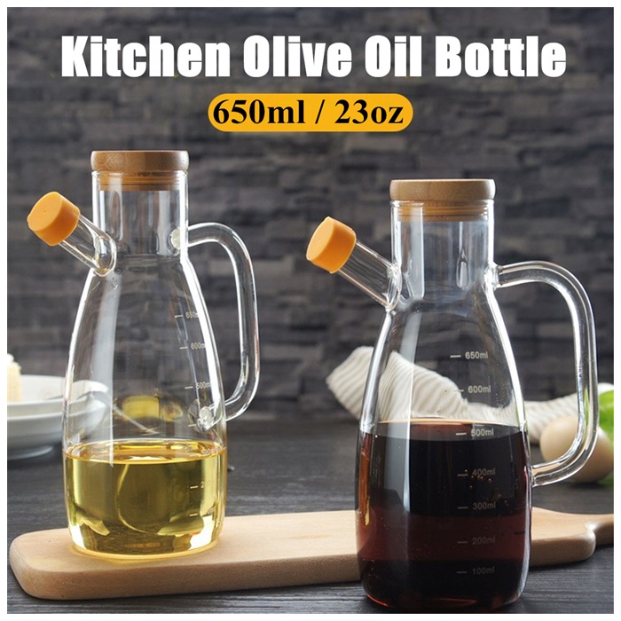 Bekas/Botol Minyak masak 650ml Kitchen Glass Oil Bottle Kitchen Jar Can Leak Proof High Glass Bamboo Cork Transparent