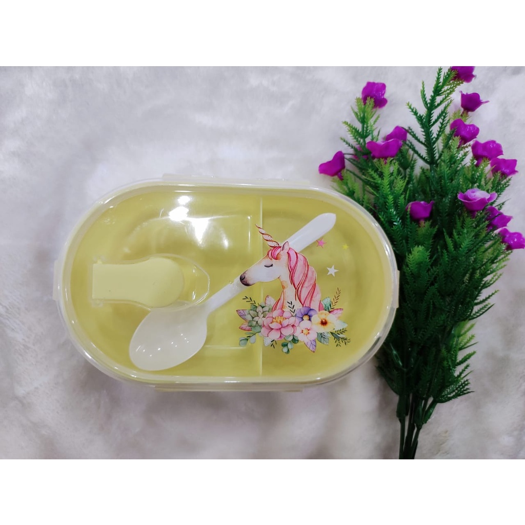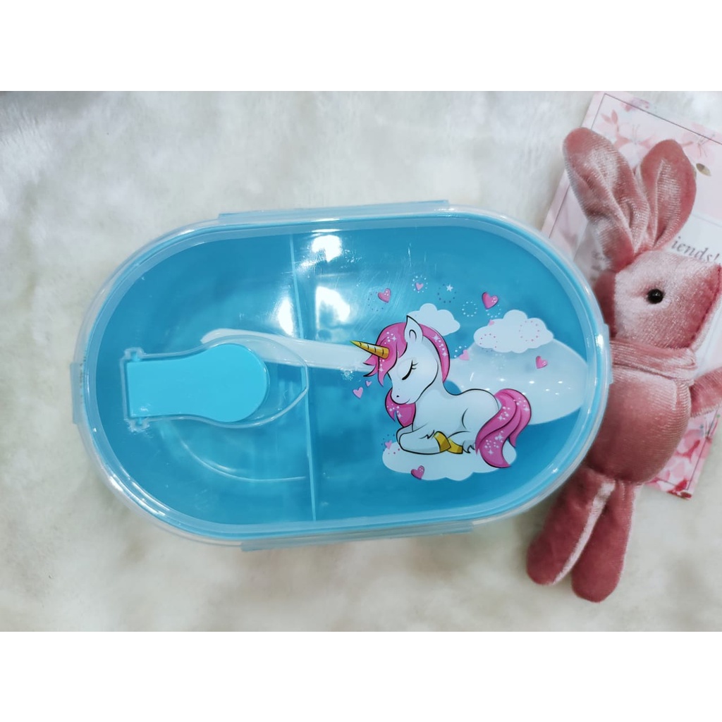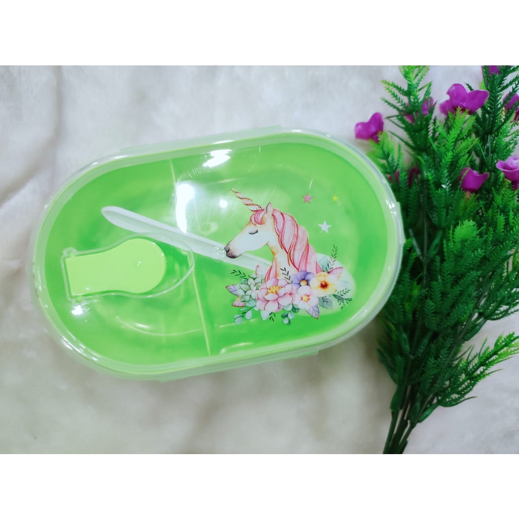 Bekas Makan budak Karton dengan sudu Kid's Tupperware Unicorn Carton with spoon lunch box