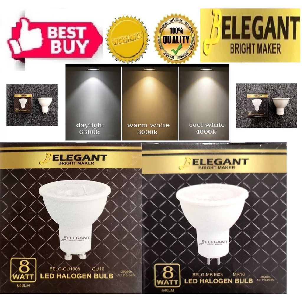 Belegant LED Halogen Bulb/LED Spotlight Bulb - 8W/3000K(Warm White)||4000K(Cool White)||6500K(Daylight) - MR16/GU10