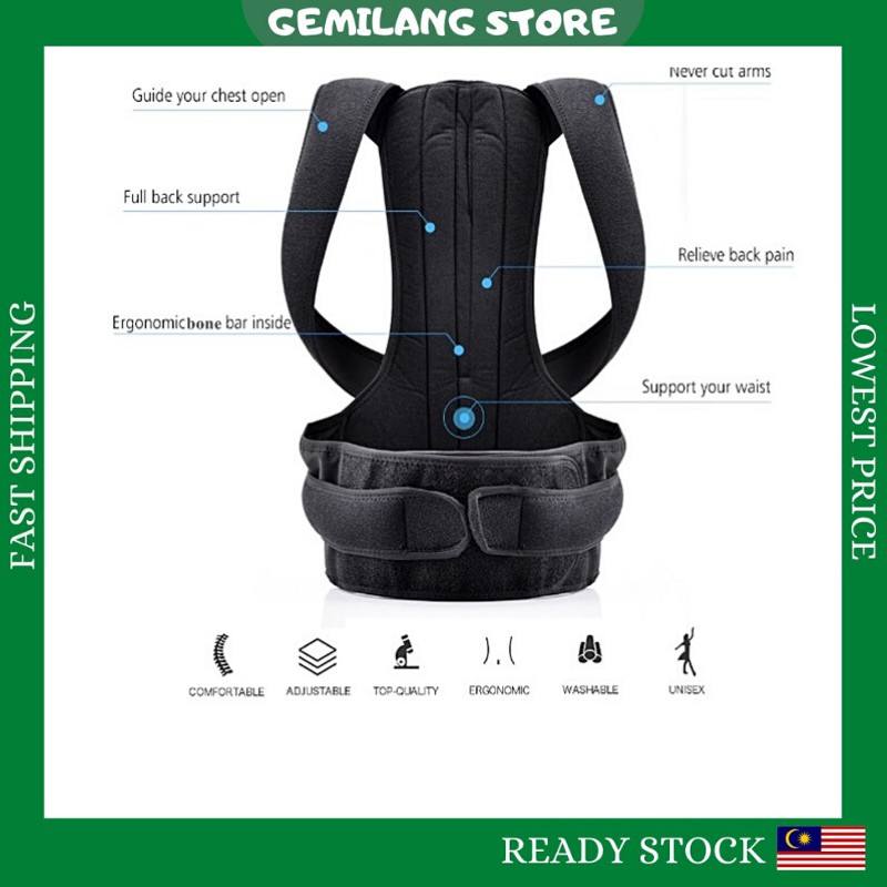 Belt Back Support Posture Corrector Shoulder Backbone Slip Disc Correction Unisex Baju Penyokong Tulang Belakang
