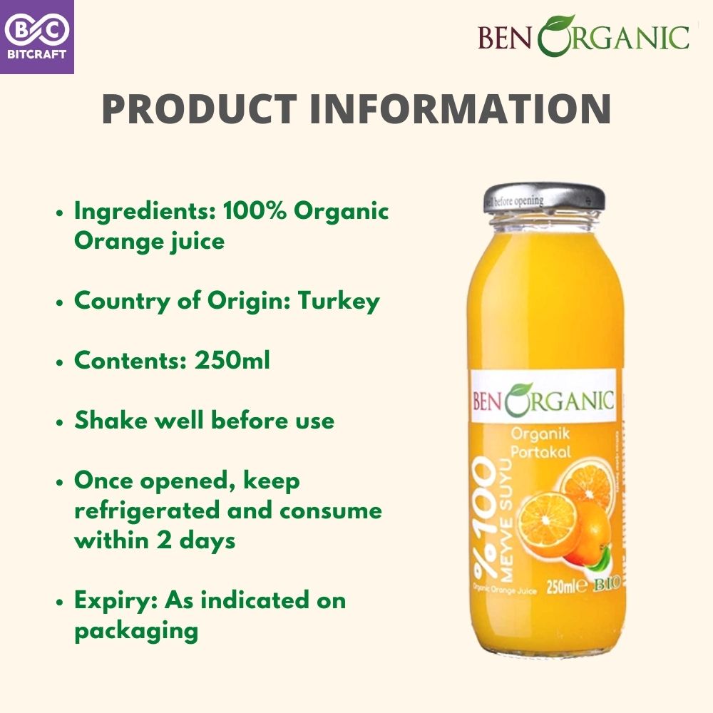 Ben Organic 100% Organic Orange Juice Imported From Turkey Jus Oren Organik Turki