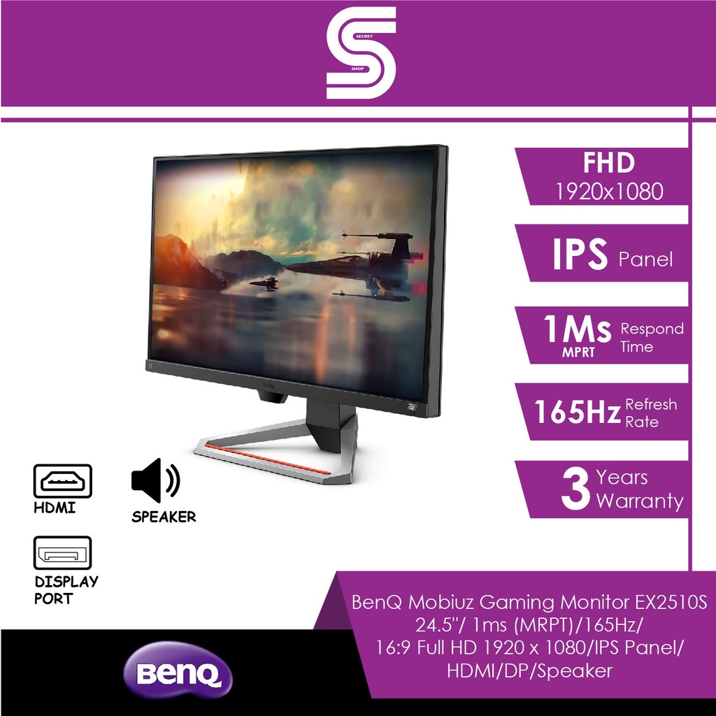 BenQ Mobiuz EX2510S 24.5" Gaming Monitor - 1ms (MRPT)/165Hz/Full HD 1920 x 1080/IPS Panel/HDMI/DP/Speaker/VESA/EyeCare