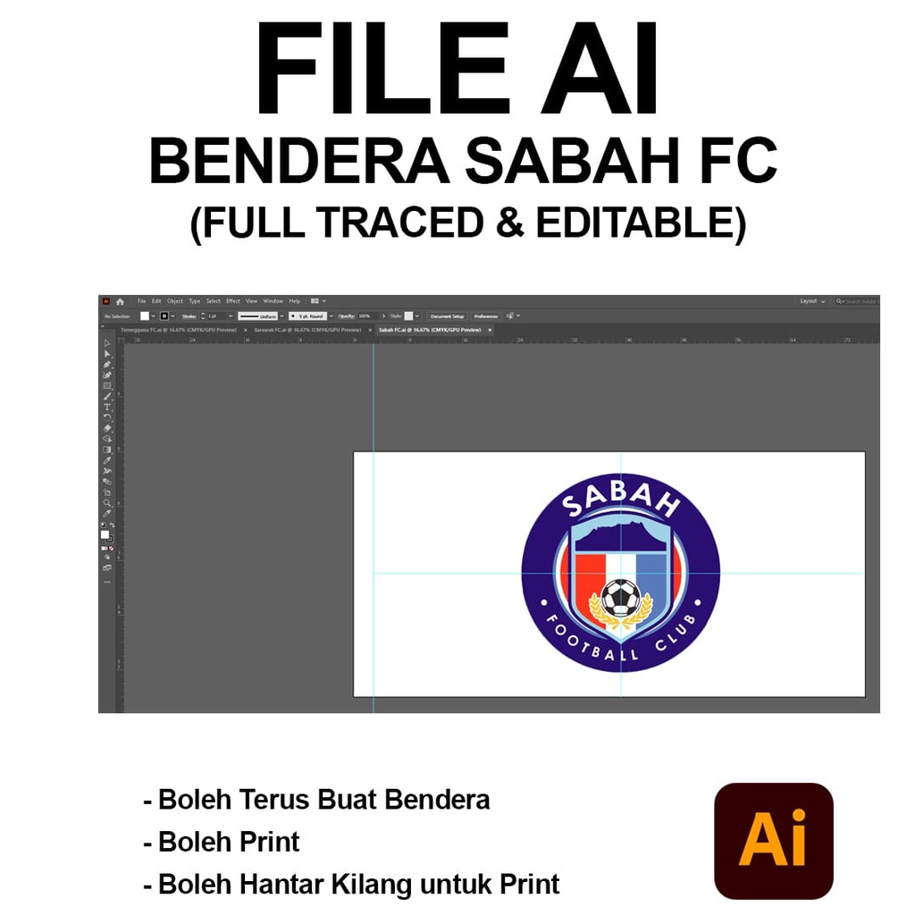 Bendera Sabah FC File Illustrator I File AI I Photoshop I Template Illustrator - Sesuai Digunakan untuk buat bendera