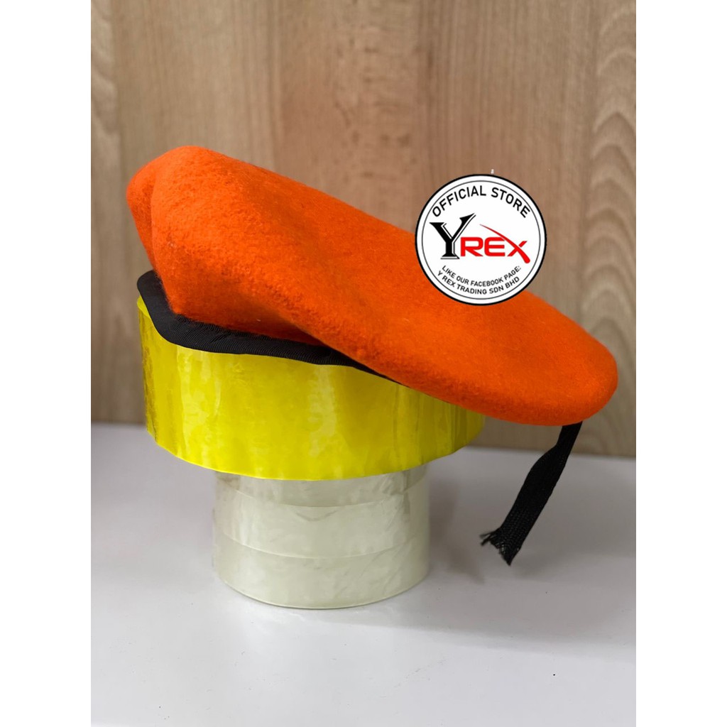 Beret Oren 100% Wool (Kain tebal)-ada pelapik (PELBAGAI SAIZ)