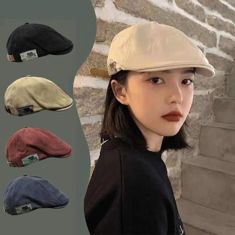 Berets vintage cap leather adjustable side label EST1973 Fashionable Beret For women Youth Hip Hop Tide Card Cap good quality Korean cap for men