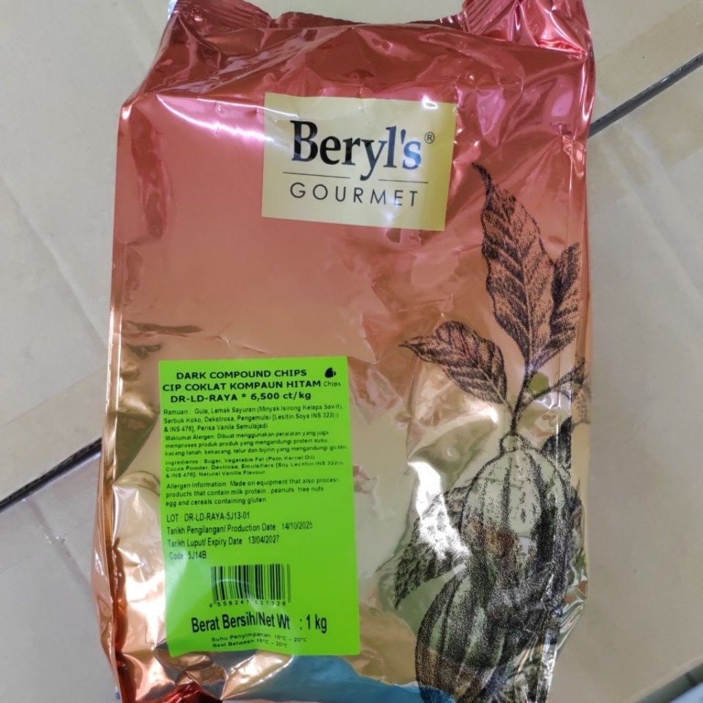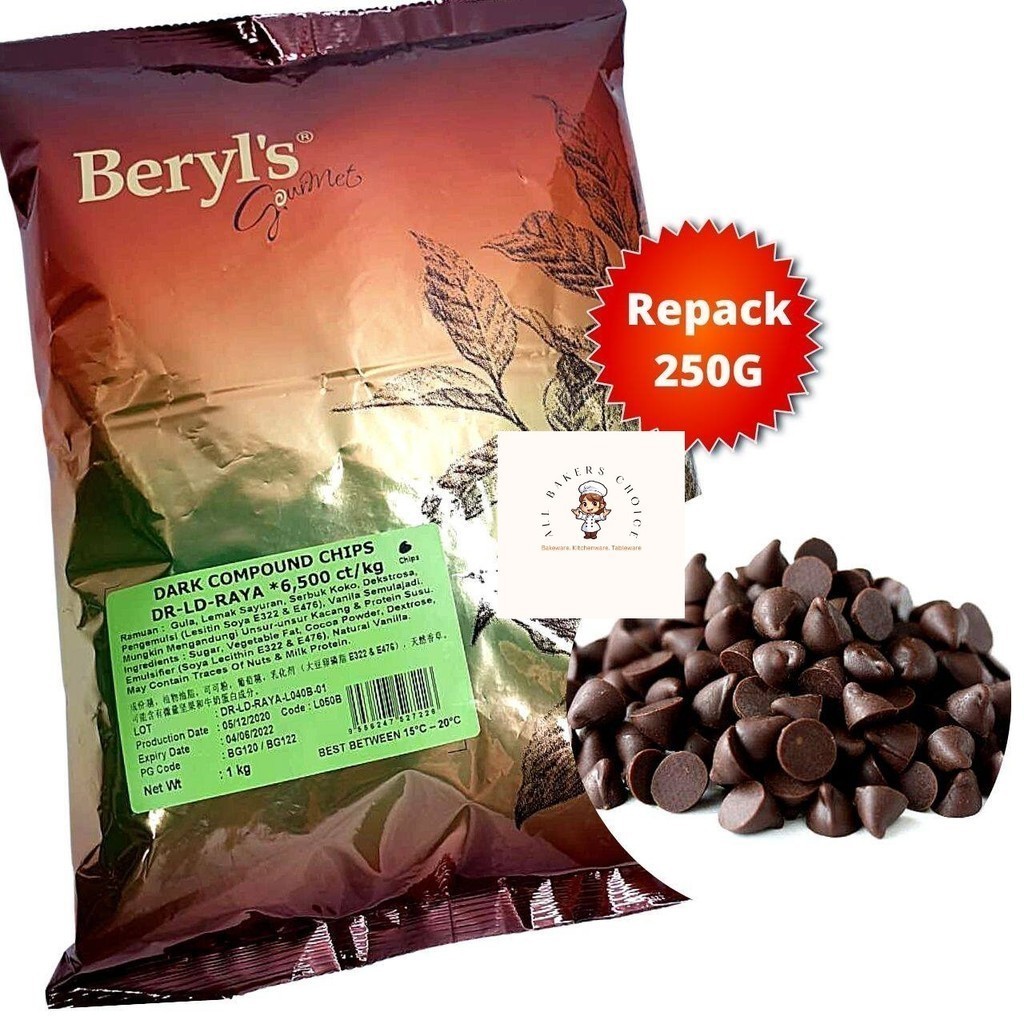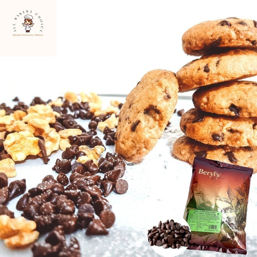 Beryl's Dark Compound Chocolate Chip 1Kg, 500g, 250g Coklat Chip | Dark Chocolate Chip | Dr-Ld-Raya | 1Kg (Halal)