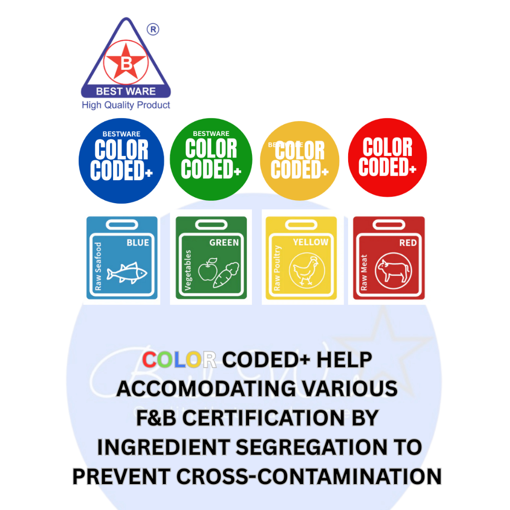Best Ware Color Coded Color Cover F&B Certification MESTI HACCP Freezer Container Separate Ingredients