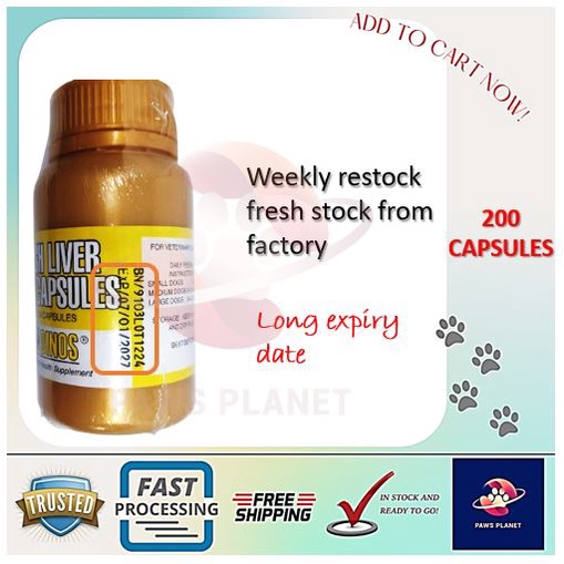 Best pet's Heathcare Skin& Coat Dinos Fish Liver Oil Capsules 200'S specially for Cat & Dog 深海鱼肝油亮毛防掉
