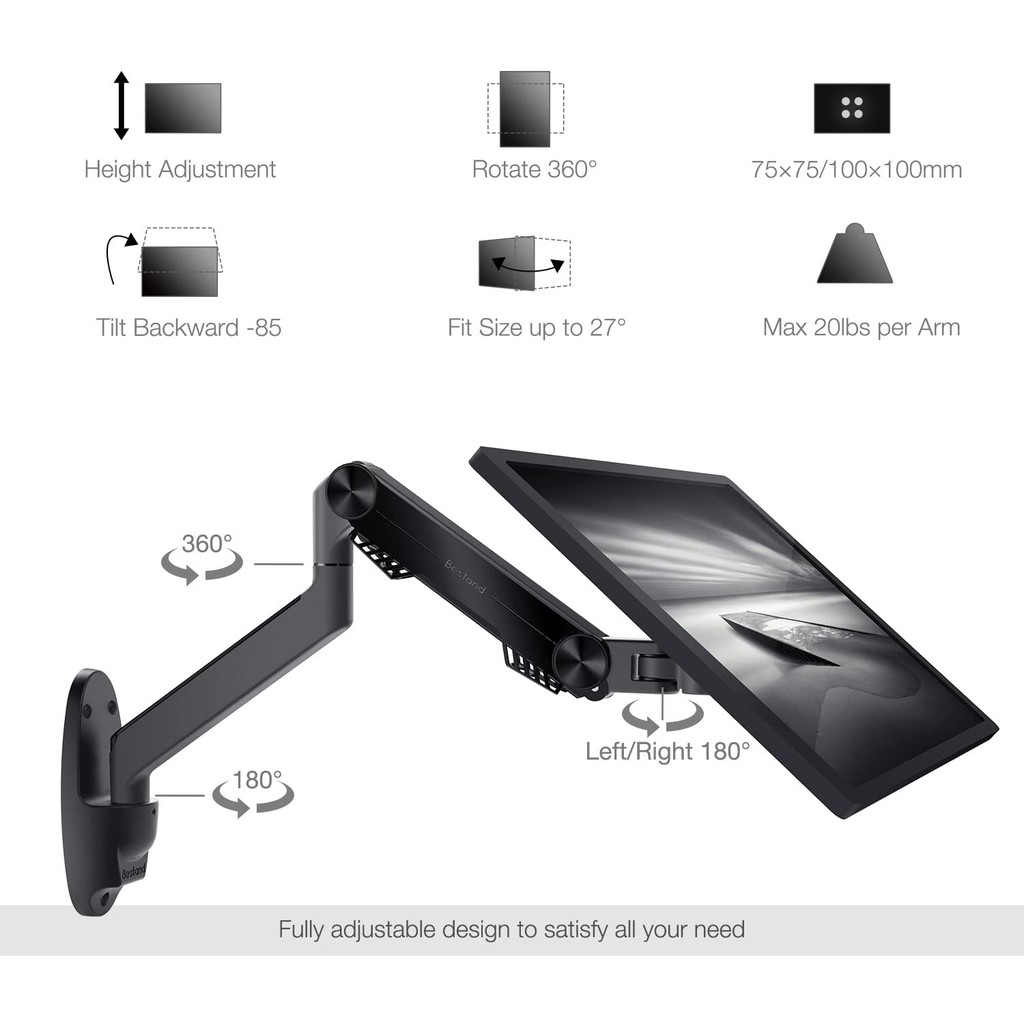Bestand Single Monitor Wall Mount- Monitor Stand for LED LCD,Up to 17''-27'' Screen , Aluminum S3 (Grey) [Ready Stock!!]