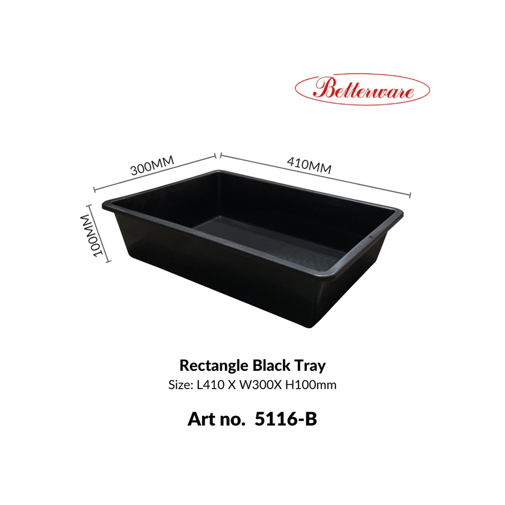 Betterware Black Plastic Tray Rectangle BASIN / Plastic Storage tray /Storage Basket Multifunctional