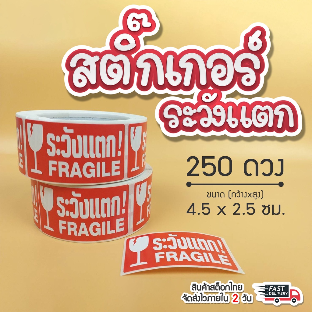Beware Of Breakage Stickers Parcel Box Sticker Size 2.5X4.5 cm. (250 Pieces) Fragile