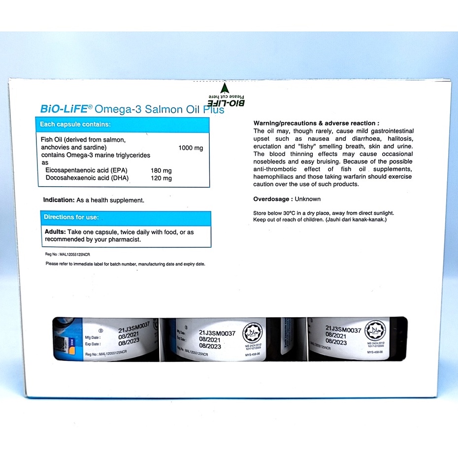 BiO-LiFE Omega-3 Salmon Oil plus 3 x 100 bovine soft capsules (For Heart Health)