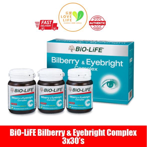 BiO-Life Bilberry & Eyebright Complex 3 x 30capsules FREE 30 capsules eye supplement (biolife)