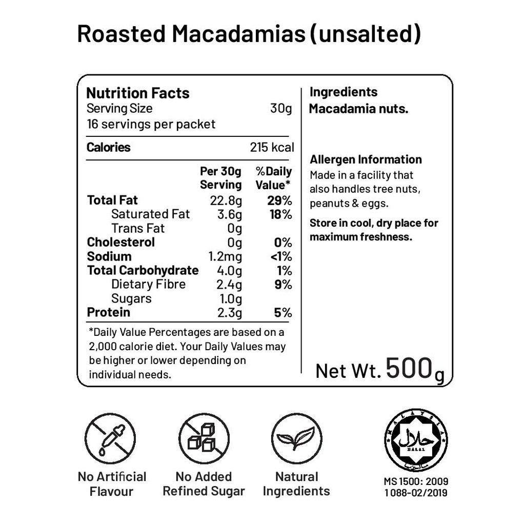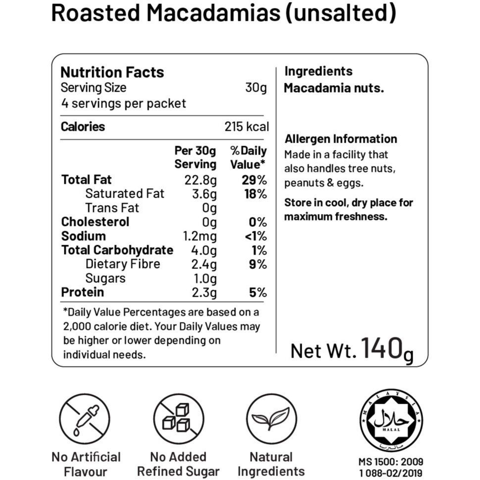 Big Nuts Lightly Roasted Macadamia Nuts Unsalted (140g/500g) - Halal Certified | Low Carb Keto Snack | Buttery Crunch