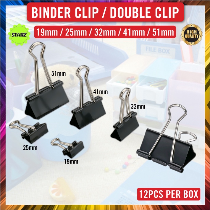 Binder Clip / Double Clip 12pcs Per Box / Clip Hitam (19mm, 25mm, 32mm, 41mm, 51mm)