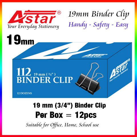 Binder clips 19 mm - Double clip Astar (12 pcs/box)