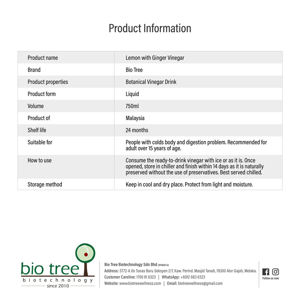 Bio Tree Lemon with Ginger Vinegar 750ml (Twin pack)