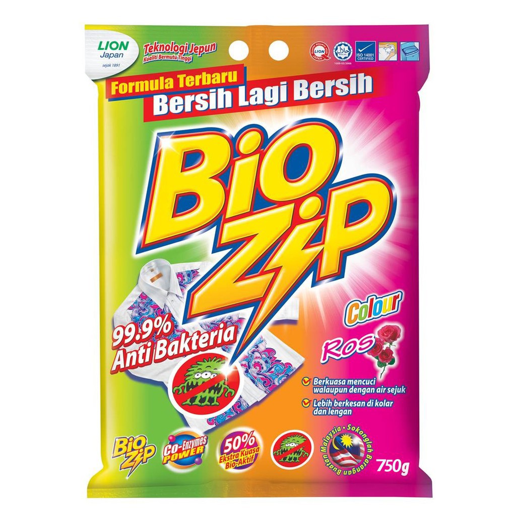 Bio Zip Detergent Powder [750GM] /Sabun Serbuk Pencuci Baju [750GM] - Colour/Flora/Limau/Oren/Aloe Vera
