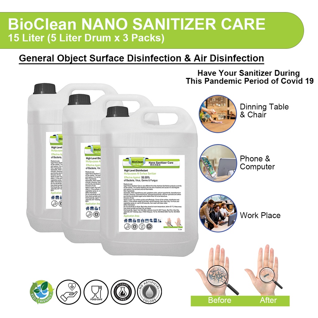 BioClean Nano hand Sanitizer and disinfectant for Multipurpose All Surface- 15 Liters