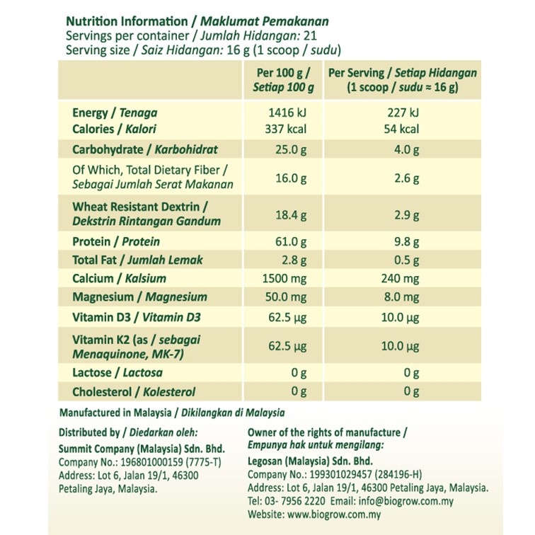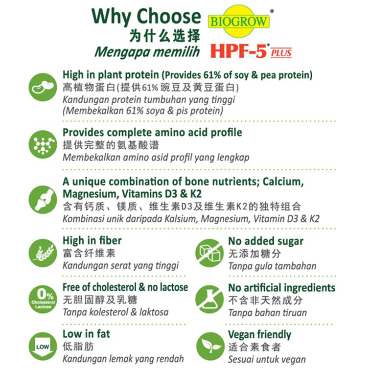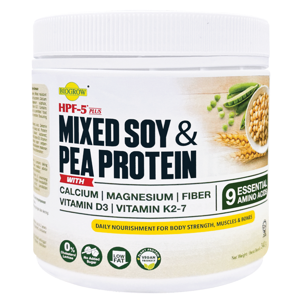 Biogrow HPF-5 PLUS - Soy & Pea Protein with Calcium, Vitamin D3 & K2, Magnesium, Fiber for Muscle & Bone Health (340g)