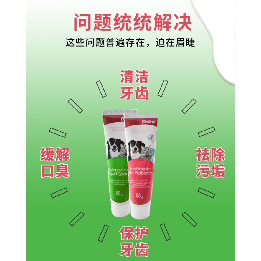 Bioline Pet Toothpaste Set for Cats & Dogs (50g) with Probiotics Calcium Enzyme Cleaning Cat & Dog Toothpaste