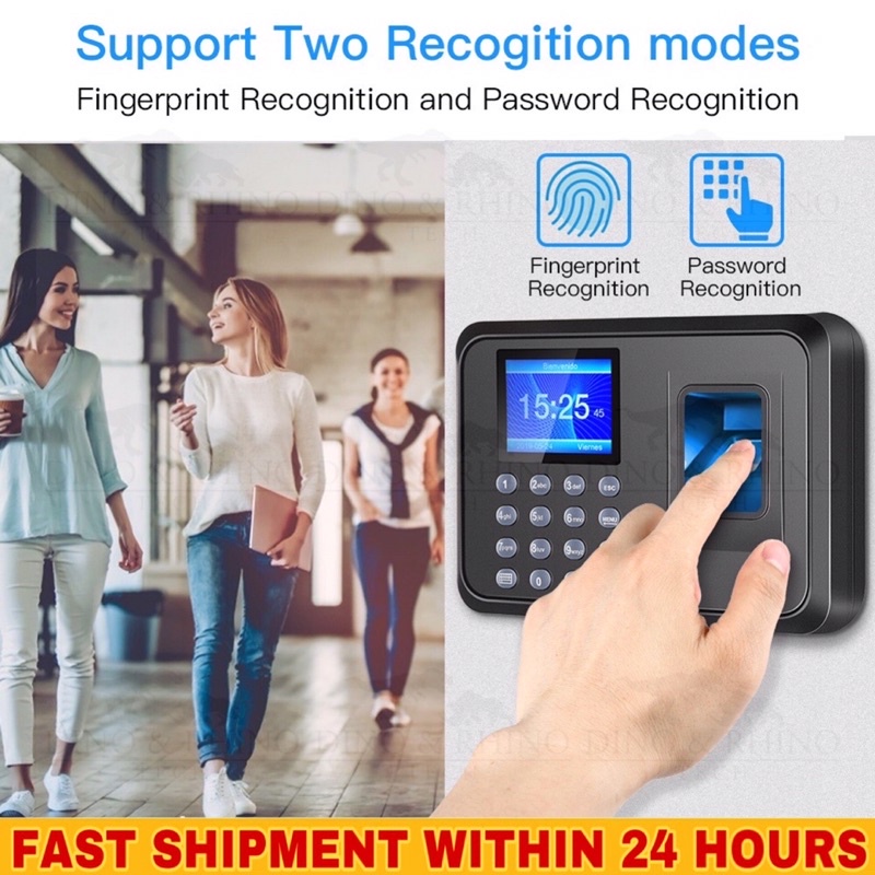 Biometric Fingerprint Attendance Machine Thumbprint Record Digital Time Recorder Office Worker Absence Mesin Punchcard