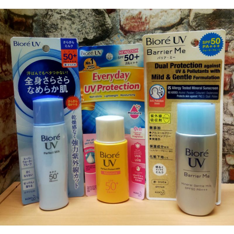 Biore Uv Sunscreen Light Up Essence, Spray, Barrier Me,Aqua Rich, Perfect Milk & Moisture SPF50+ PA++