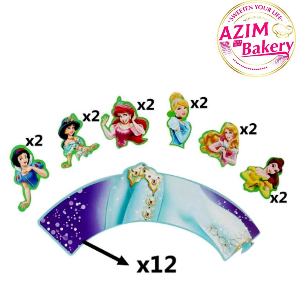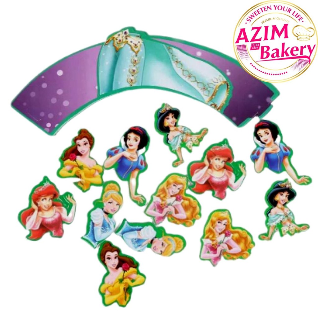 Birthday Party Cupcake Topper Disney Princess | Disney Princess Cupcake Wrapper Set | Hiasan Kek by Azim Bakery