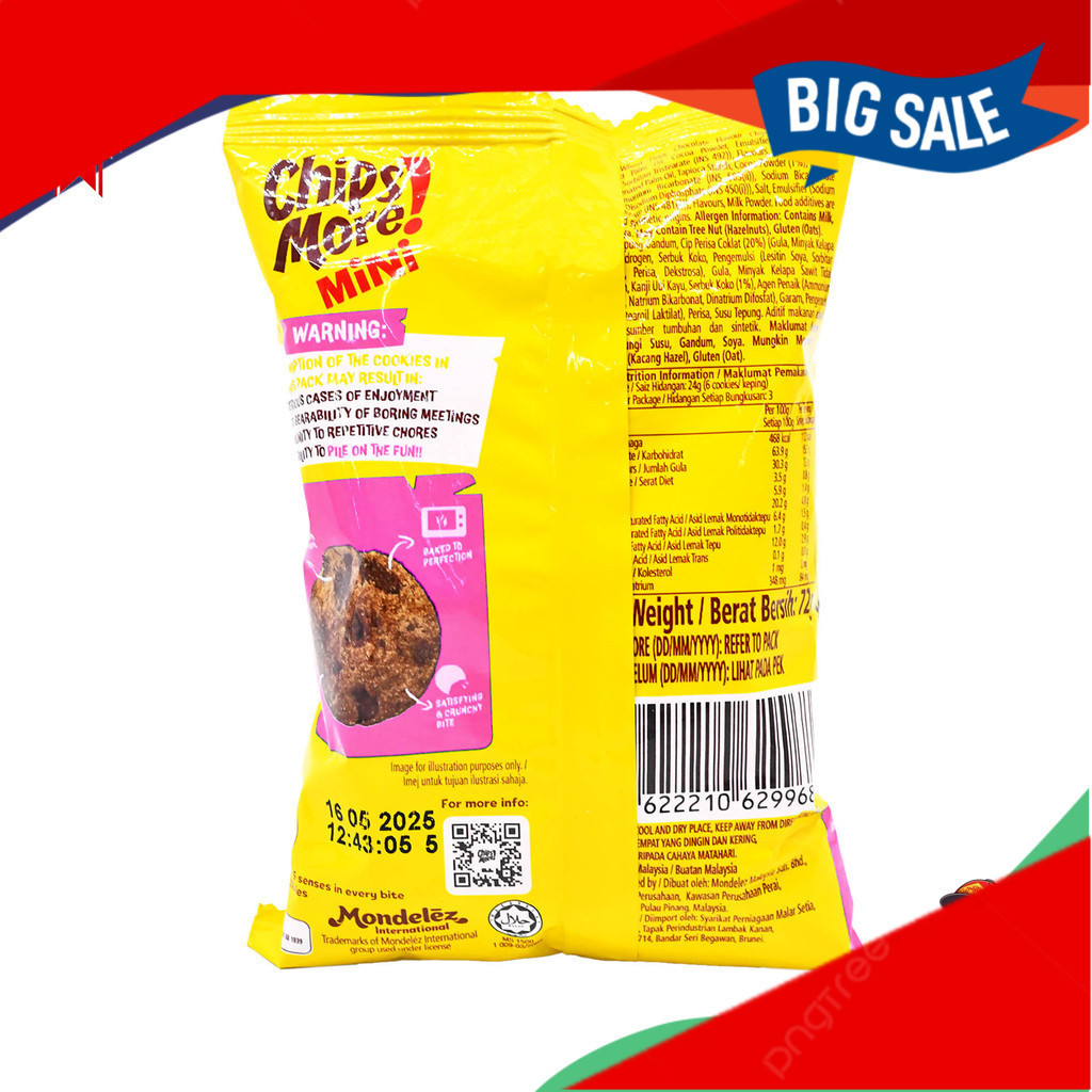Biskut Chipsmore Mini, Biscuits Chipsmore Double Chocolate Chip Cookies 72G