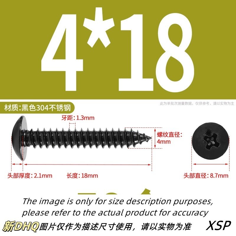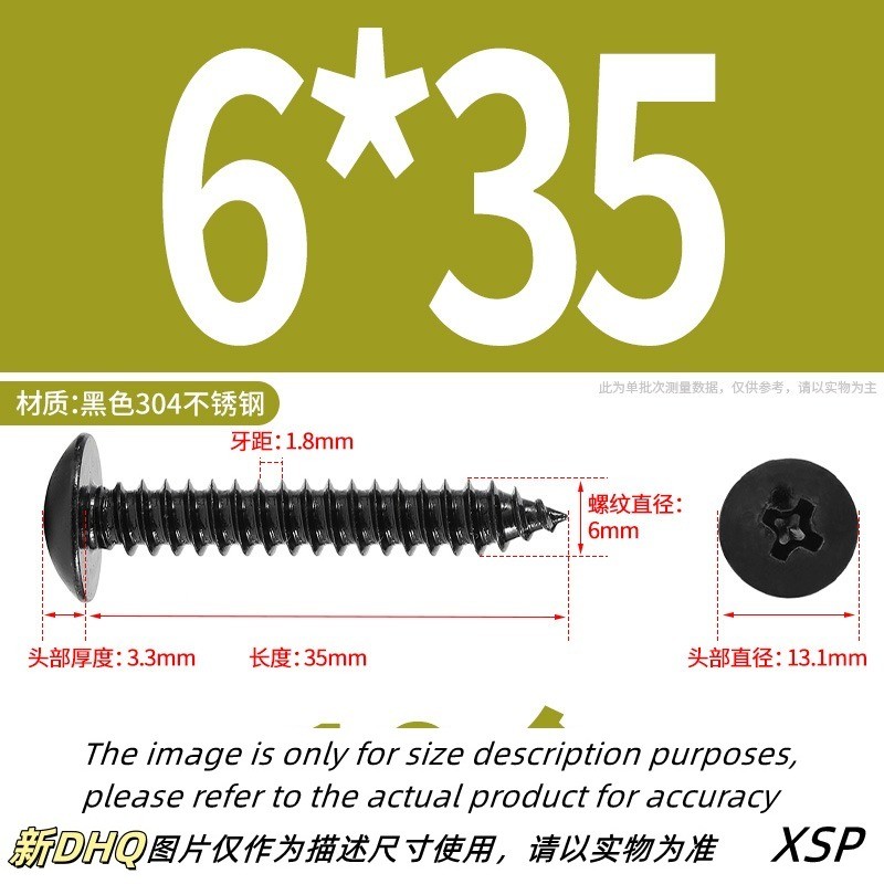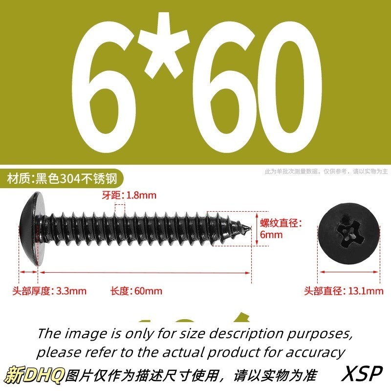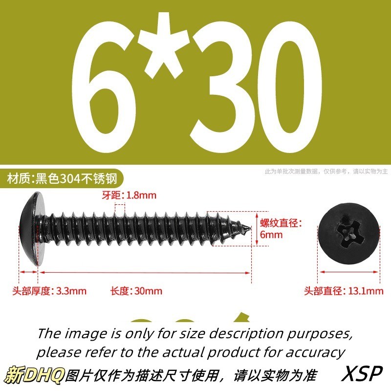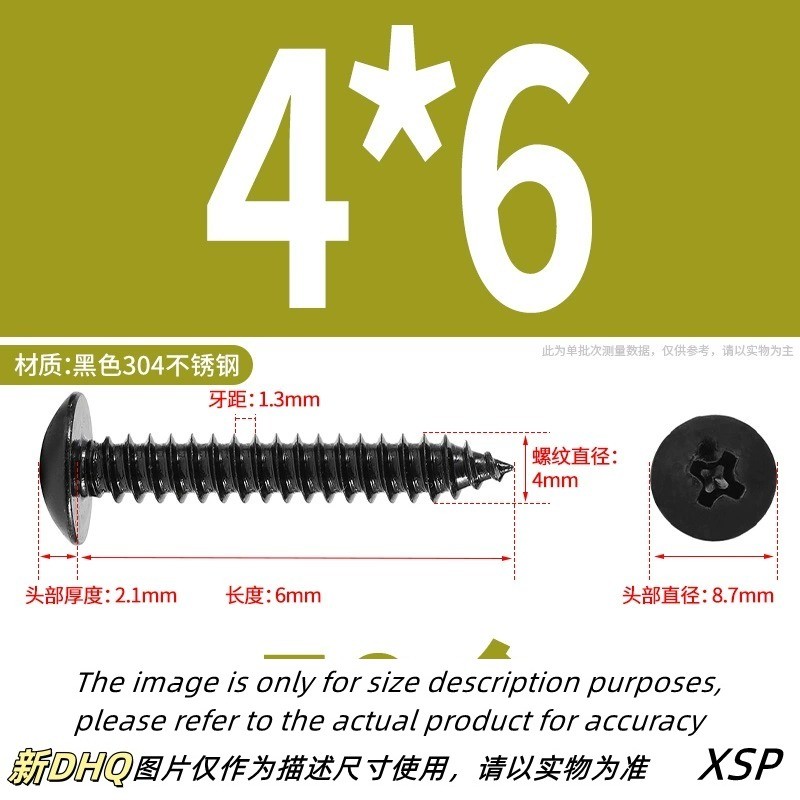 Black 304 Stainless Steel Phillips Large Flat Head Self-Tapping Screw Wooden Screw M3/M4/M5/M6 * L6-60mm (JSK-YL-MY)