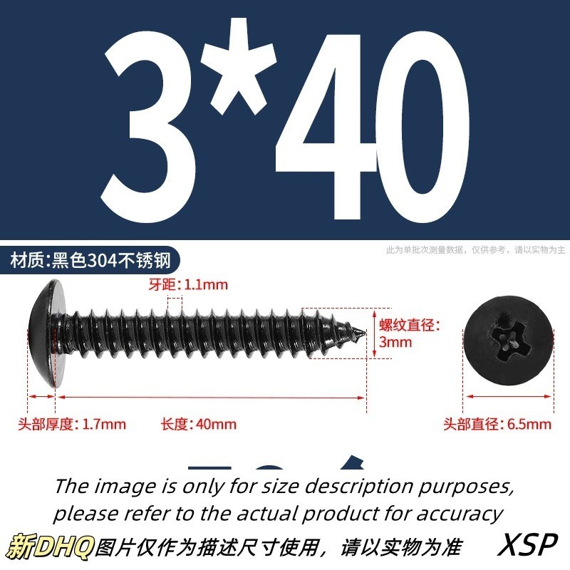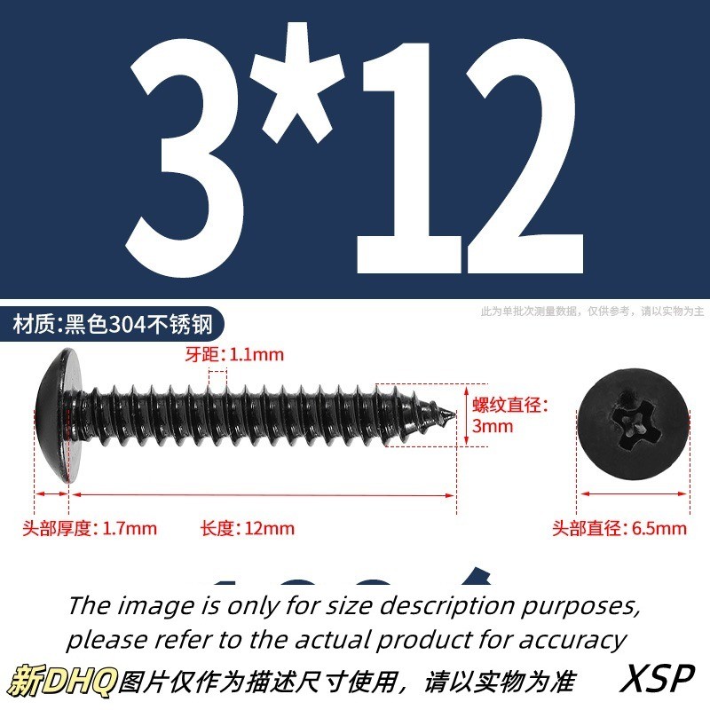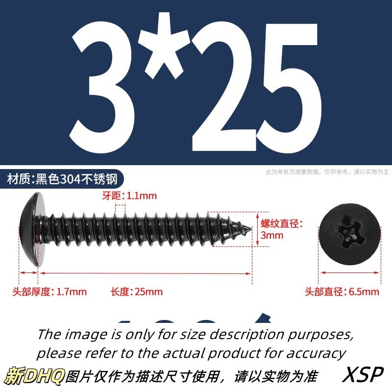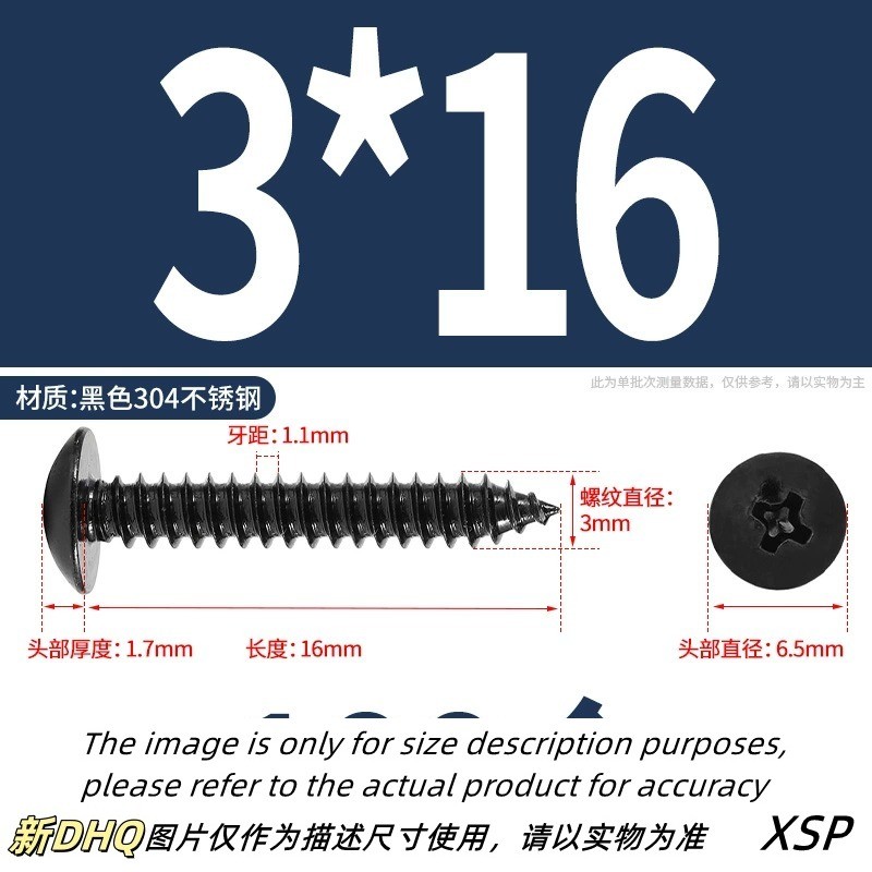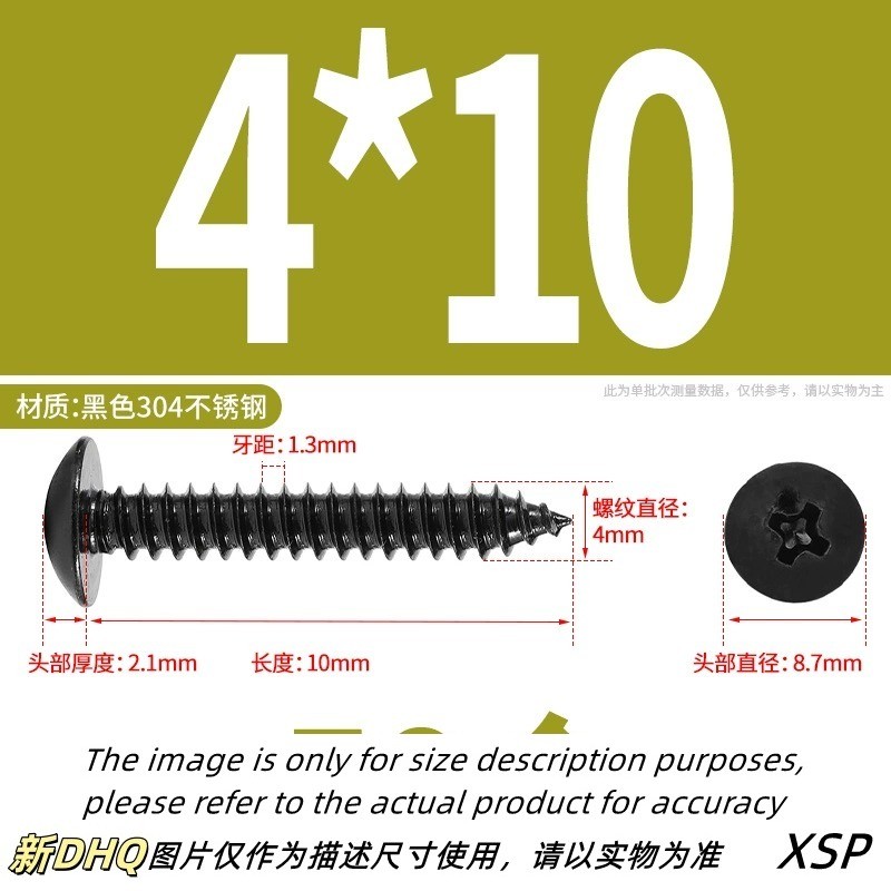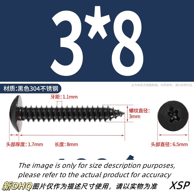 Black 304 Stainless Steel Phillips Large Flat Head Self-Tapping Screw Wooden Screw M3/M4/M5/M6 * L6-60mm (JSK-YL-MY)