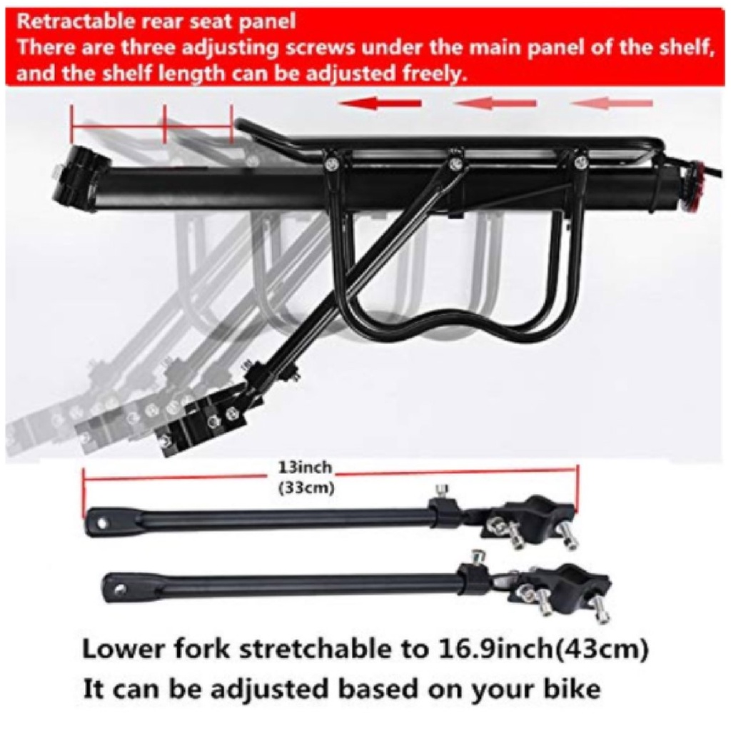 Black Bike Rear Rack Adjustable Bicycle Seat Aluminum Carrier Tempat Duduk Mountain Bike Carrier Rack Belakang Basikal