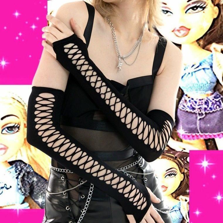 Black Fingerless Gloves Women's Punk Dark Gothic Cuff Men's Hip Hop Cutout Rock Gloves E-GIRL Grunge Emo Accessories Mall Goth