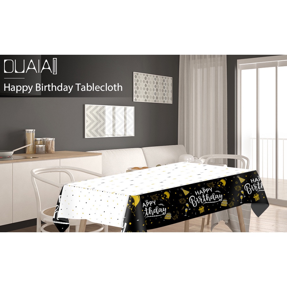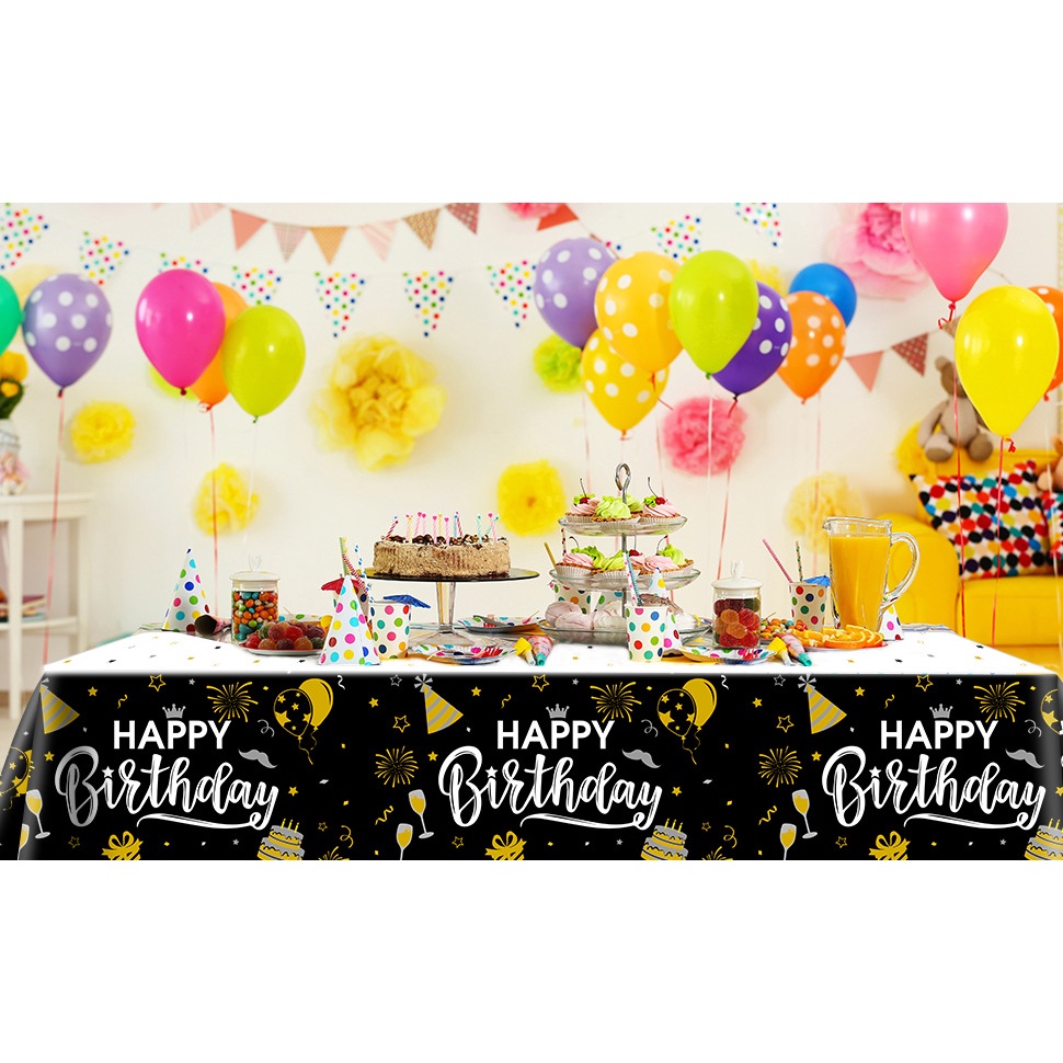 Black Gold Colorful Balloon Happy Birthday Tablecloth Disposable Plastic Tablecover Birthday Party Decor Table Cloth